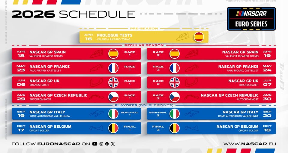 Le championnat NASCAR Euro Series V8 GP lance officiellement sa saison 2026 du 17 au 19 avril sur le circuit Ricardo Tormo à Valencia. Un